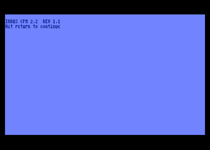 Uruchomienie CP/M rozpoczynamy od wgrania terminala. Pokilku sekundach ekran powinien zmienić kolor i ukazać się kursor, w tymmomencie wkładamy do stacji dysków (tej z RAM/SRAM Chargerem, a nie wirtualnejSIO2PC czy SIO2SD!) naprawioną wcześniej dyskietkę BOOT i naciskamy na panelustacji dysków klawisze DRIVE TYPE i ERROR. Po chwili powinien ukazać się napis jakna obrazku obok oraz prośba o naciśnięcie klawisza RETURN... Gdy to zrobimypojawi się znak zachęty A>. Jesteśmy pod CP/M!