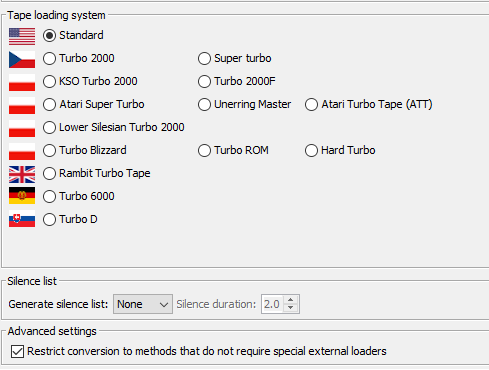 Pojawi się okno, gdzie można wybrać za pomocą której metody będzie konwertowany plik (Allowed methods), tzn. który loader będzie używany podczas wgrywania na Atari, oraz gdzie zostaną wygenerowane pliki. Zaznacz wszystkie metody z wyjątkiem Tape Image – Turgen sam wybierze optymalny loader. Naciśnij Next.