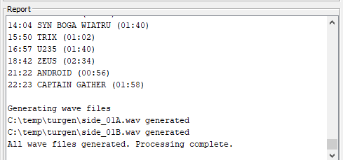 Po ewentualnych zmianach, pozostaje nacisnąć Create sides i w wybranym wcześniej katalogu otrzymujemy gotowe pliki, które możemy przesłać do magnetofonu!
